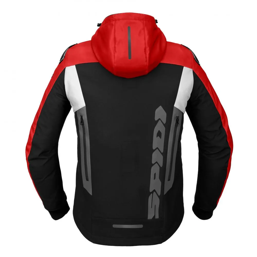 Мотокуртка SPIDI Hoodie Warrior це багатосезонна куртка, що має основу із стійкої до стирання тришарової тканини з підкладкою з мікрофібри, ламінованої в мембрану Windout, що поєднує в собі легкість та захист від атмосферних впливів. Є знімний капюшон на блискавці з шнурком для регулювання, що стягує. Багатосезонне використання цієї куртки гарантується чотирма великими вентиляційними отворами та технологією Step-In Wear, яка дає можливість додавати внутрішні шари для їзди в прохолодну погоду.