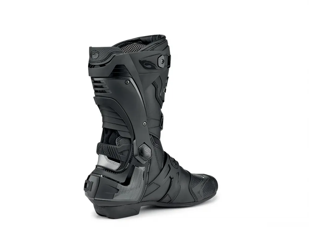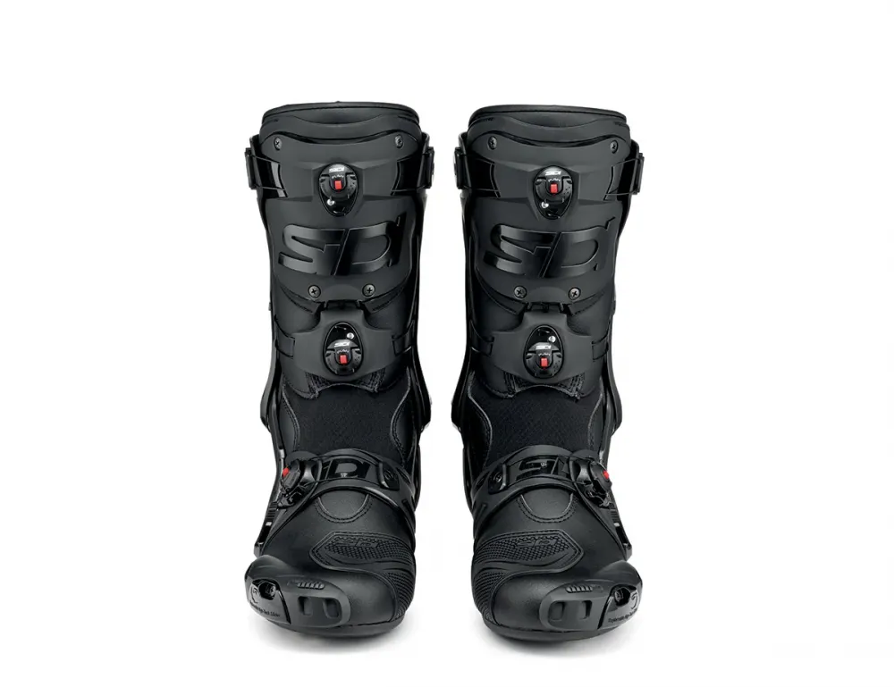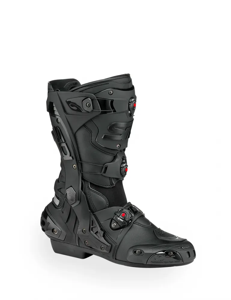 SIDI Rex – это топовые гоночные мотоботы с максимальной защитой. Каждый элемент этой модели предназначен для максимальной поддержки и устойчивости. Используются высококачественные защитные вставки из TPU и экзоскелет из армированного стекловолокном нейлона, что обеспечивает надежную фиксацию и защиту от ударов. Система регулировки плотности посадки позволяет точно настраивать фиксацию с обеих сторон. Находясь в зонах контакта, она не только повышает комфорт, но и служит дополнительной защитой от ударов.