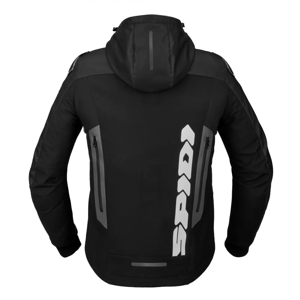 Мотокуртка SPIDI Hoodie Warrior це багатосезонна куртка, що має основу із стійкої до стирання тришарової тканини з підкладкою з мікрофібри, ламінованої в мембрану Windout, що поєднує в собі легкість та захист від атмосферних впливів. Є знімний капюшон на блискавці з шнурком для регулювання, що стягує. Багатосезонне використання цієї куртки гарантується чотирма великими вентиляційними отворами та технологією Step-In Wear, яка дає можливість додавати внутрішні шари для їзди в прохолодну погоду.