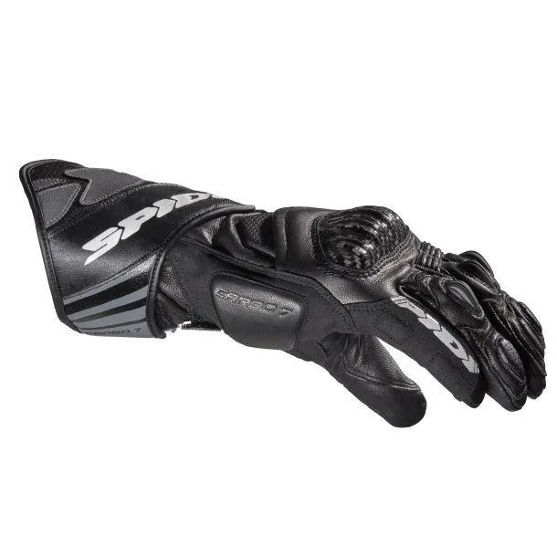 SPIDI Carbo 7 - це остання версія високотехнологічних змагальних рукавичок серії Carbo, яким довіряють професійні гонщики на вищих рівнях автоспорту в усьому світі завдяки їх сертифікації рівня 1 EN 13594 діє до: 2015 KP CE. Кожна рукавичка має основу з козячої шкіри від 0,6 до 0,8 мм, яка цінується за її легку вагу і виняткову стійкість до стирання і проколів. Броня з вуглеродного волокна одягається на обидва суглоби, а рукавички мають набивання високої щільності на долоні, тильній стороні кисті і бічній стороні кисті. У Carbo 7 є міцний ремінець для фіксації зап'ястя, який надійно утримує їх на місці, а в шкірі в ключових областях є ряд отворів, що забезпечують відмінний повітряний потік.