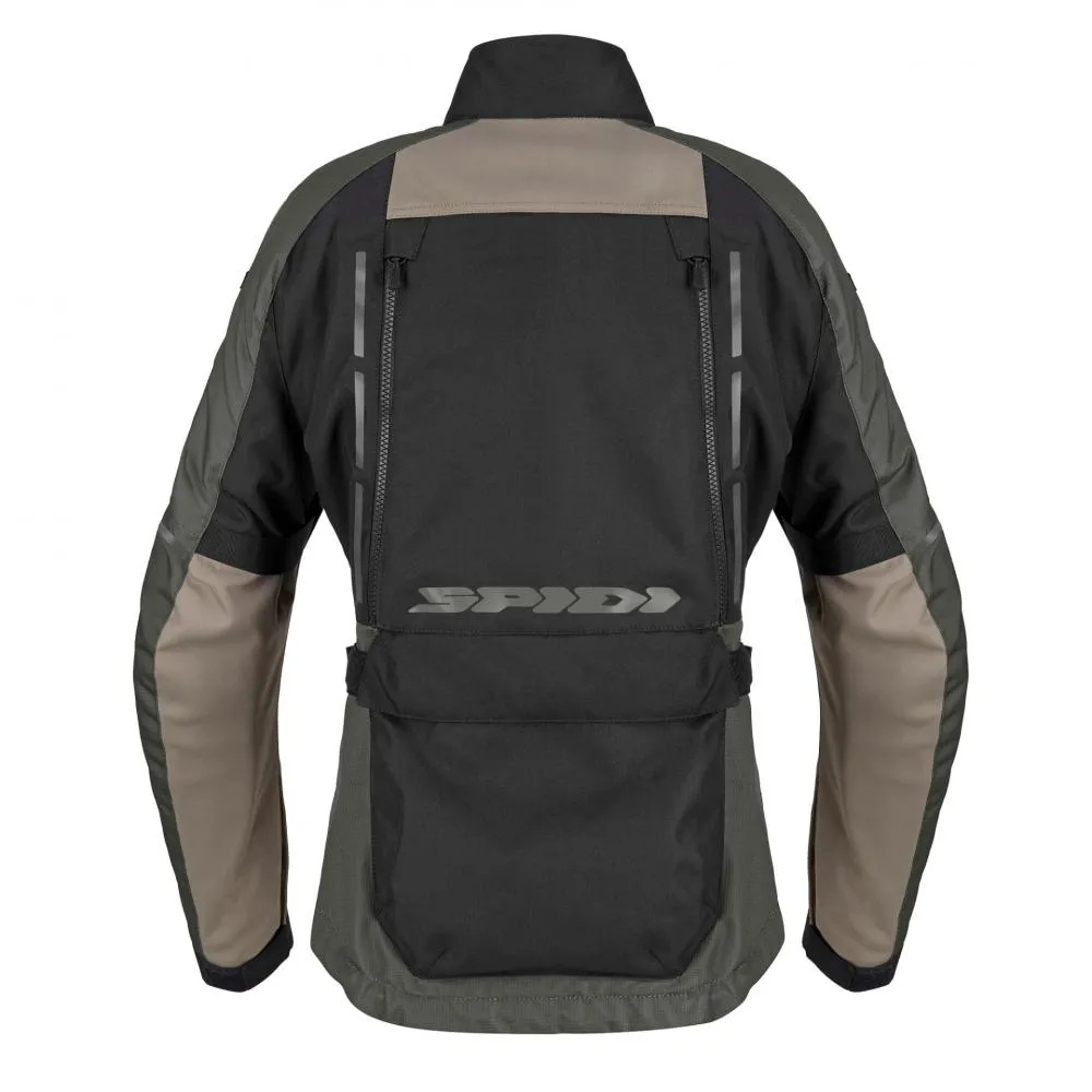 Зовнішній шар виготовлений із зносостійких тканин підвищеної міцності, що забезпечують виняткову довговічність і захист. В основі куртки — мембрана H2OUT®: водонепроникна, вітрозахисна та дихаюча, розроблена для захисту від погодних умов без втрати комфорту. Завдяки запатентованій системі STEP-INWEAR від SPIDI, як мембрану H2OUT®, так і термопідкладку можна повністю знімати й використовувати окремо або разом. Така конструкція дозволяє створити шість різних конфігурацій, легко адаптуючи куртку до будь-яких умов їзди.