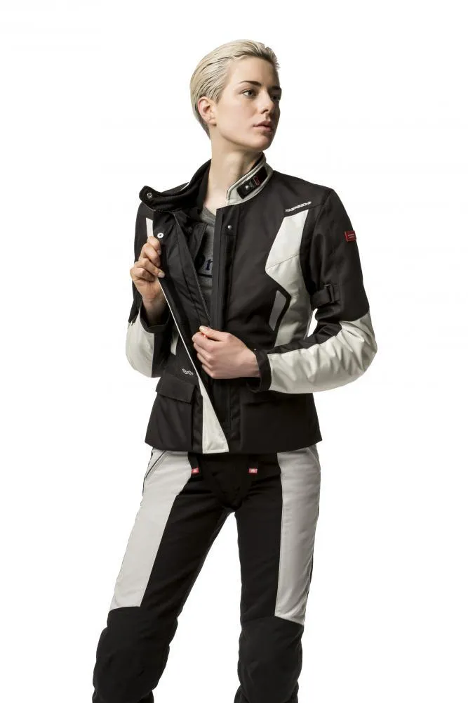 Жіноча туристична мотокуртка Spidi VOYAGER LADY H2OUT - розроблена для поганих дорожніх умов – холод, дощ тощо. Верхній шар куртки виконаний з міцного поліаміду. Використовуються блискавки YKK®. На ліктях та плечах розміщенні захисні елементи Force Tech. Також можливо доукомплектувати куртку захистом спини Back Protector. Є регулювання об’єму на талії та рукавах, застібка з регулюванням на шиї. Дихаюча мембрана H2OUT інтегрована в куртку. Також є тепла з’ємна підкладка iз синтепону SPIDI Thermo Liner. Куртка має світовідбивні зони великої площини, завдяки яким підвищується видимість у темний час доби.В куртці є два водонепронекних зовнішні кармани.