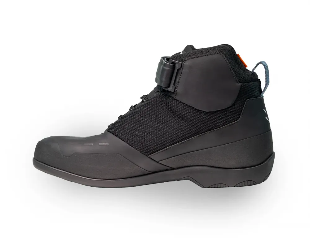 Инновационный материал рассеивает энергию удара, обеспечивая надежную защиту без ограничения подвижности. Система фиксации на шнуровке и ремешке гарантирует плотную посадку, предотвращая смещение обуви при ушибах. Это улучшает стабильность, контроль и безопасность при езде. Резиновая подошва с плоской конструкцией обеспечивает максимальное сцепление с подножками, повышая комфорт, управляемость и стабильность в любых условиях.