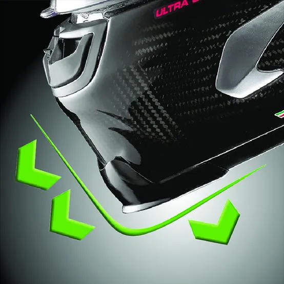 Главная особенность X-Lite X803 RS Ultra Carbon наличие дополнительного гоночного спойлера RAS - Racetrack Aerodynamic Spoiler в задней части шлема. Это спойлер разработан при поддержке гонщиков из MotoGP а также испытан в аэродинамической трубе. Благодаря этому спойлеру уменьшается аэродинамическое сопротивление шлема и улучшает его устойчивость на высоких скоростях