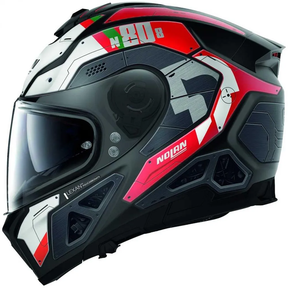 Nolan N80-8 - новый топовый интеграл в линейке Nolan, наследник чрезвычайно популярного Nolan N87. Смелый и современный дизайн подчеркивает каждую деталь, от скорлупы до воздухозаборников. Благодаря своим техническим характеристикам и багатому стандартному оснащению, это идеальный шлем для любого случая, от активных городских поездок до самых сложных путешествий, независимо от используемого мотоцикла и пункта назначения.