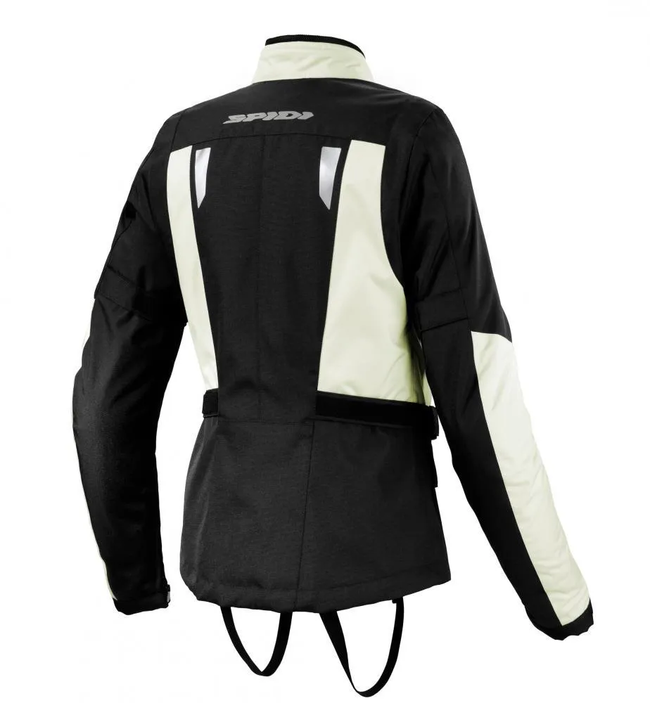 Жіноча туристична мотокуртка Spidi VOYAGER LADY H2OUT - розроблена для поганих дорожніх умов – холод, дощ тощо. Верхній шар куртки виконаний з міцного поліаміду. Використовуються блискавки YKK®. На ліктях та плечах розміщенні захисні елементи Force Tech. Також можливо доукомплектувати куртку захистом спини Back Protector. Є регулювання об’єму на талії та рукавах, застібка з регулюванням на шиї. Дихаюча мембрана H2OUT інтегрована в куртку. Також є тепла з’ємна підкладка iз синтепону SPIDI Thermo Liner. Куртка має світовідбивні зони великої площини, завдяки яким підвищується видимість у темний час доби.В куртці є два водонепронекних зовнішні кармани.